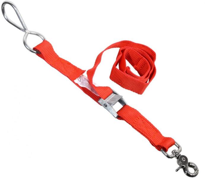 A heveder az ajtózár egyik részében rögzítőszemmel, a másikban karabinerrel, a meghúzáshoz pedig csattal van felszerelve. Használati utasítás: Akassza be (pattintsa) a heveder fémszemét a hátsó ajtó zárjába, a másik részét pedig rögzítse karabinerrel a zárszerkezethez. Végül húzza meg a pántot a csattal középen. Termék részletek:
