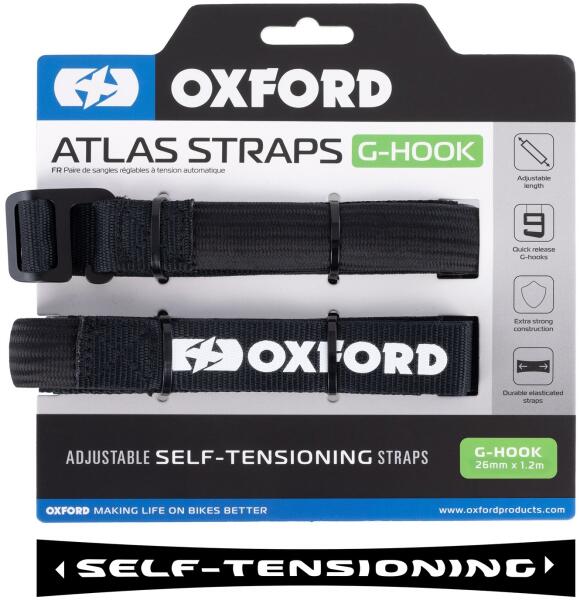 OXFORD Atlas G-Hook csomagrögzítő pántok 2 db fekete 26mm x 1, 2 m